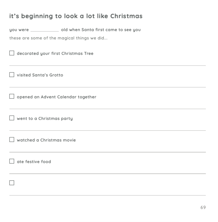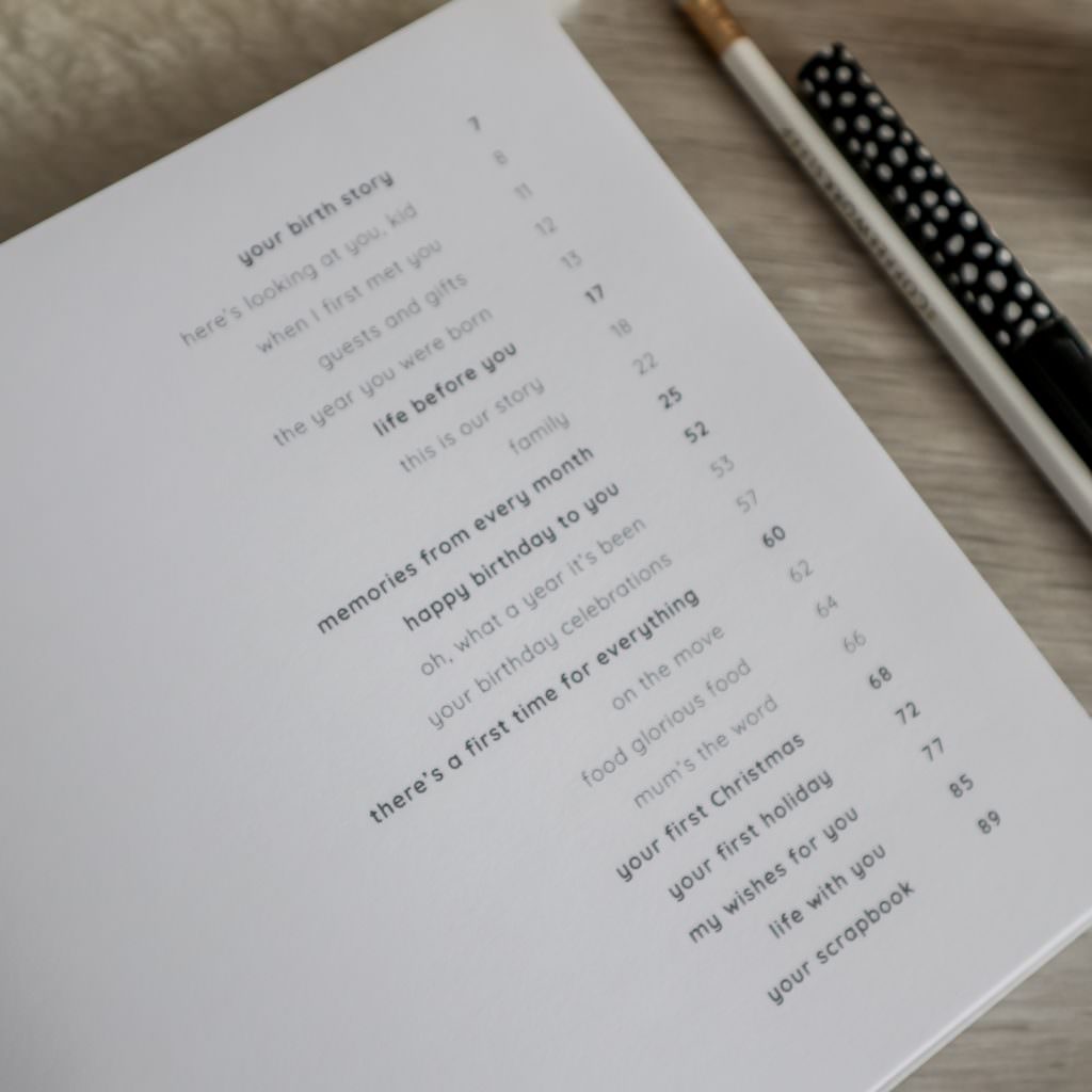 Their Arrival – Their birth story, how you felt as a new parent, letters to your new baby and a snapshot of the year they were born.